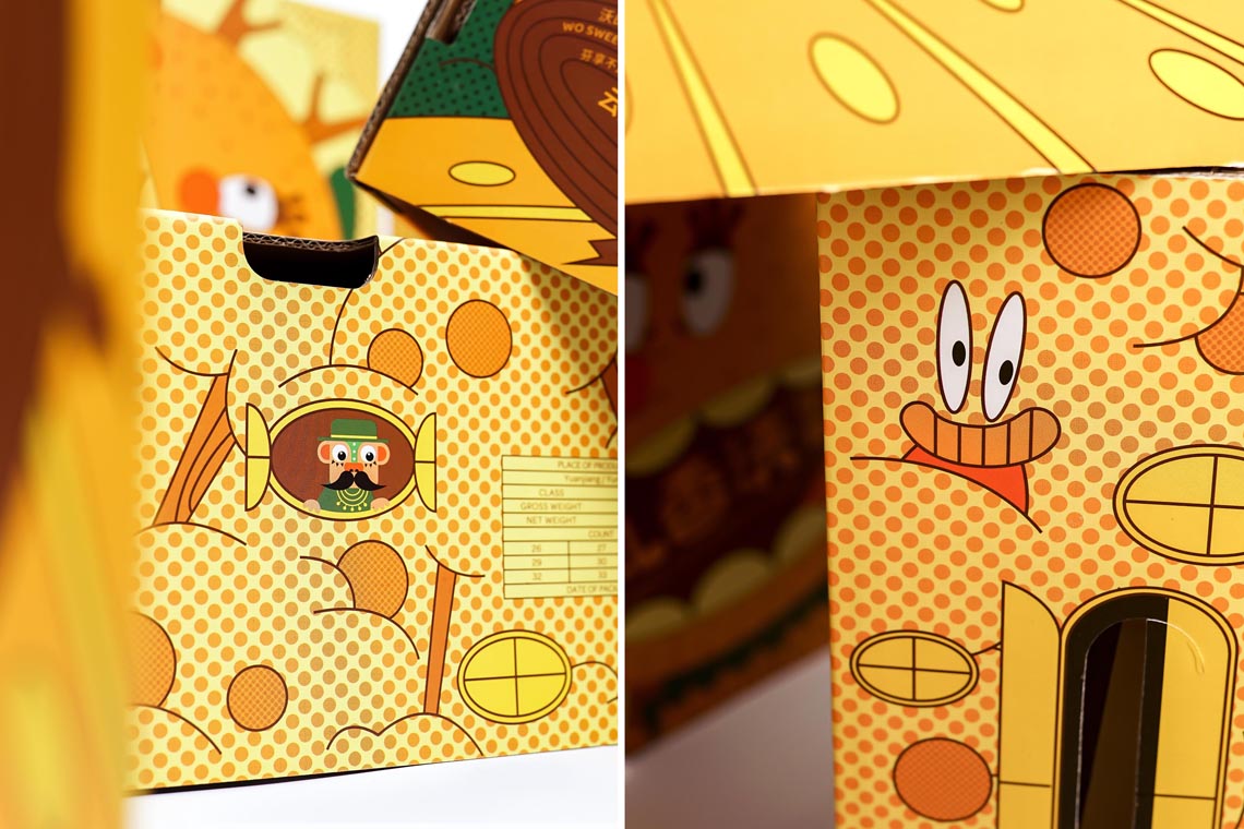 開始我們就對此款產(chǎn)品設(shè)定了角色,它就是“沃柑”。我們把它激活,它變身了,跑到林地里,大口大口的享受著果實,似乎住在樹上的“蠻人”被吵醒了,想看看究竟發(fā)生了什么?還好,大伙都是一群可愛的人,一起分享手里的果實吧!整個包裝豐富多彩,自由活潑,區(qū)別市場的同類產(chǎn)品。